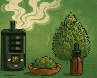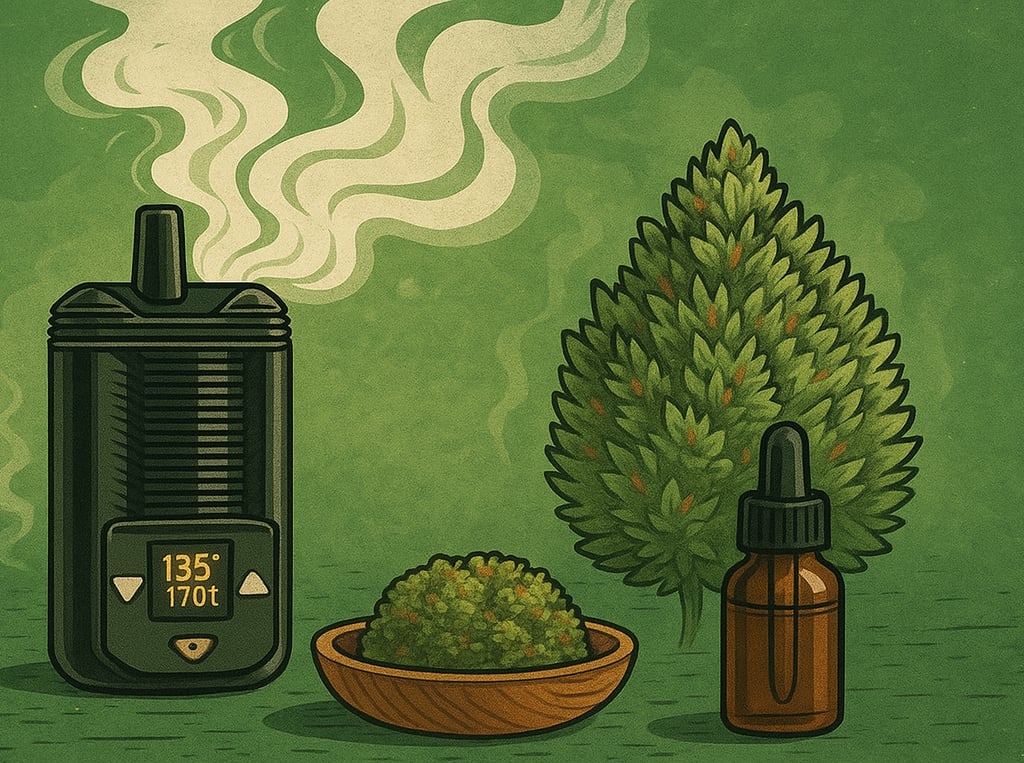 Temperatura media (170–190°C) È il range “universale”: ottimo equilibrio tra rilascio di cannabinoidi e terpeni. I sapori sono pieni ma non bruciati, e si percepiscono sia effetti cerebrali che corporei. In questa fascia si vaporizza il grosso di THC, CBD e CBN.